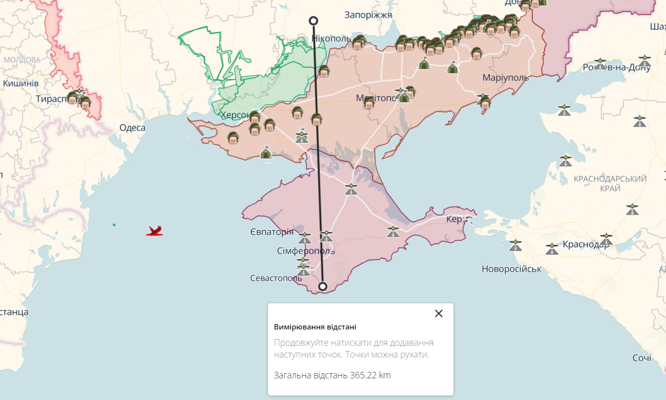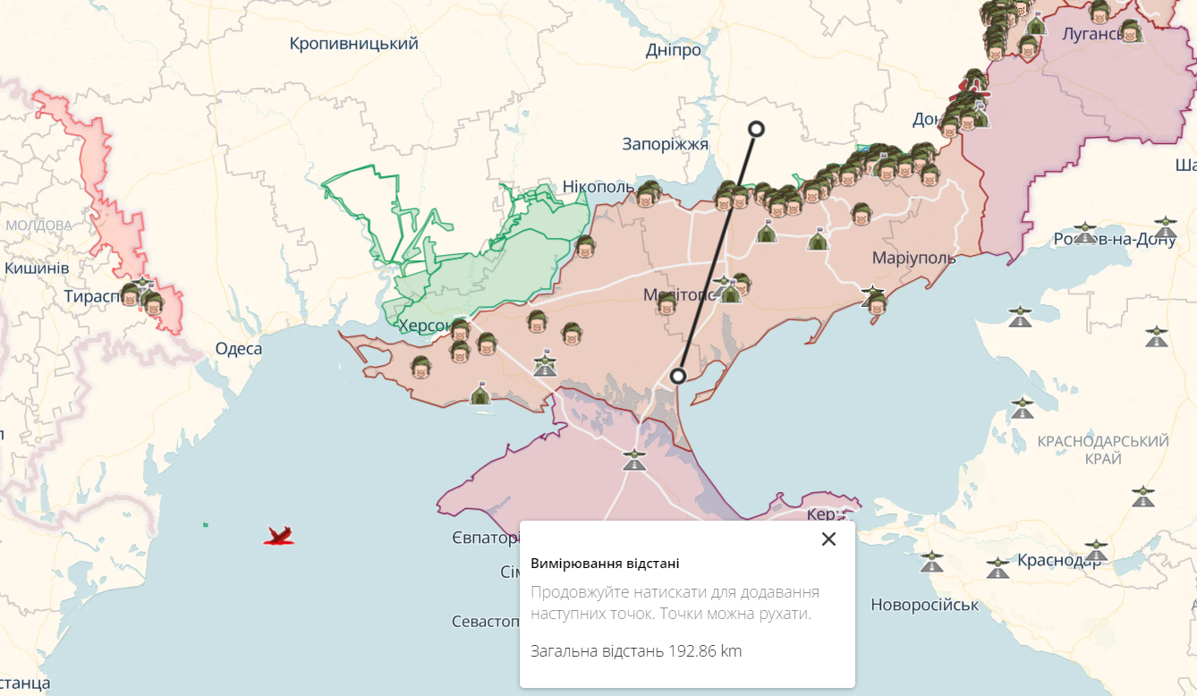 Звісно, відстані 290 кілометрів від лінії фронту до всіх найбільш віддалених частин окупованої території цілком достатньо. Втім, тут варто зауважити, що пуски з відстані, близької до лінії фронту, – це надзвичайний ризик.