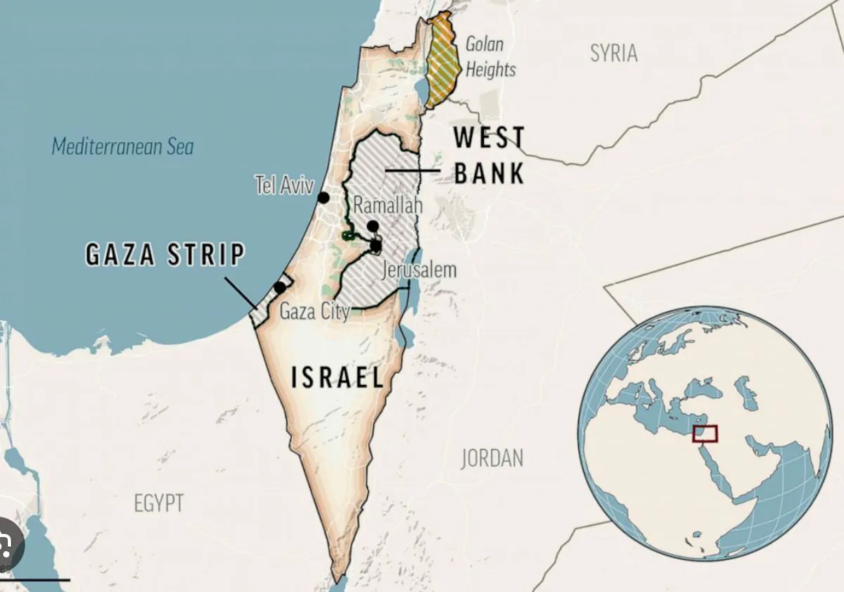 На південному заході Сектор Гази межує з Єгиптом, це так званий "Філадельфійський коридор", усі інші суходільні ділянки – це кордон з Ізраїлем. Формально, Сектор Гази – це територія держави Ізраїль, частина так званої Палестинської автономії (ПА), друга частина – Західний берег річки Йордан або просто "Західний Берег".