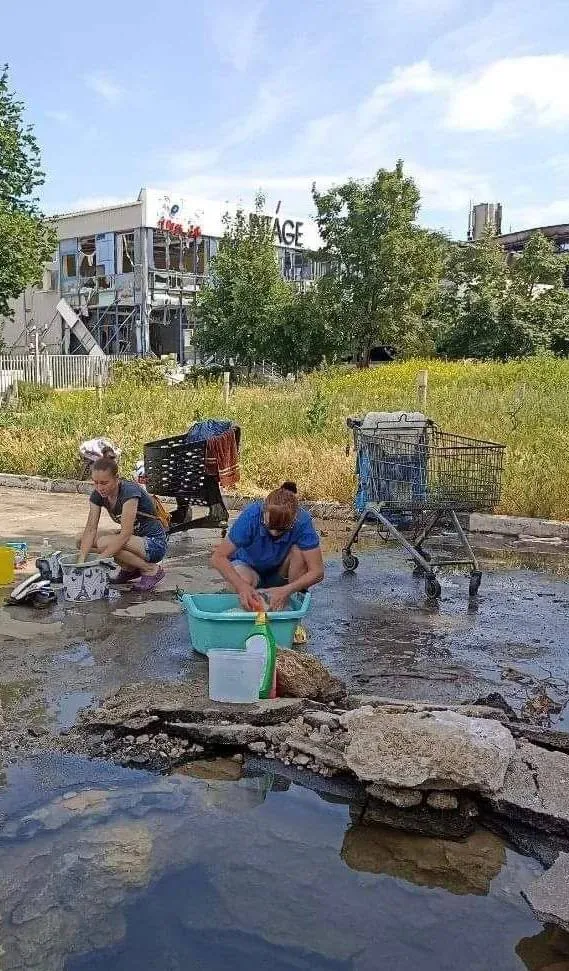 Маріуполь. Поки окупанти відкривають показові "Помывочные", мешканці відкривають пральні в калюжі. Вода в місті дійсно є, але геть не там і не та, про яку варто казати. 21 сторіччя. Центр Європи. Середньовіччя, яке подарувала Росія, – написав Петро Андрющенко.