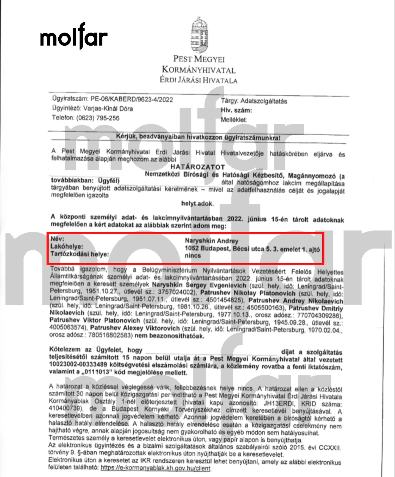 Будинок у Будапешті, де прописаний син Наришкіна, належить дуже цікавим людям. За цією адресою зареєстровані Андрій Наришкін і компанія Voldan Investments / Molfar