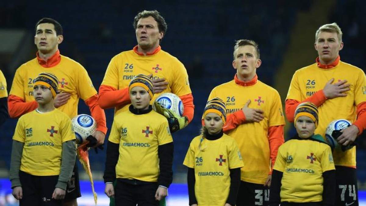 Усі футболісти "Шахтаря" одягли футболки із написом "Пишаємось" на грудях.