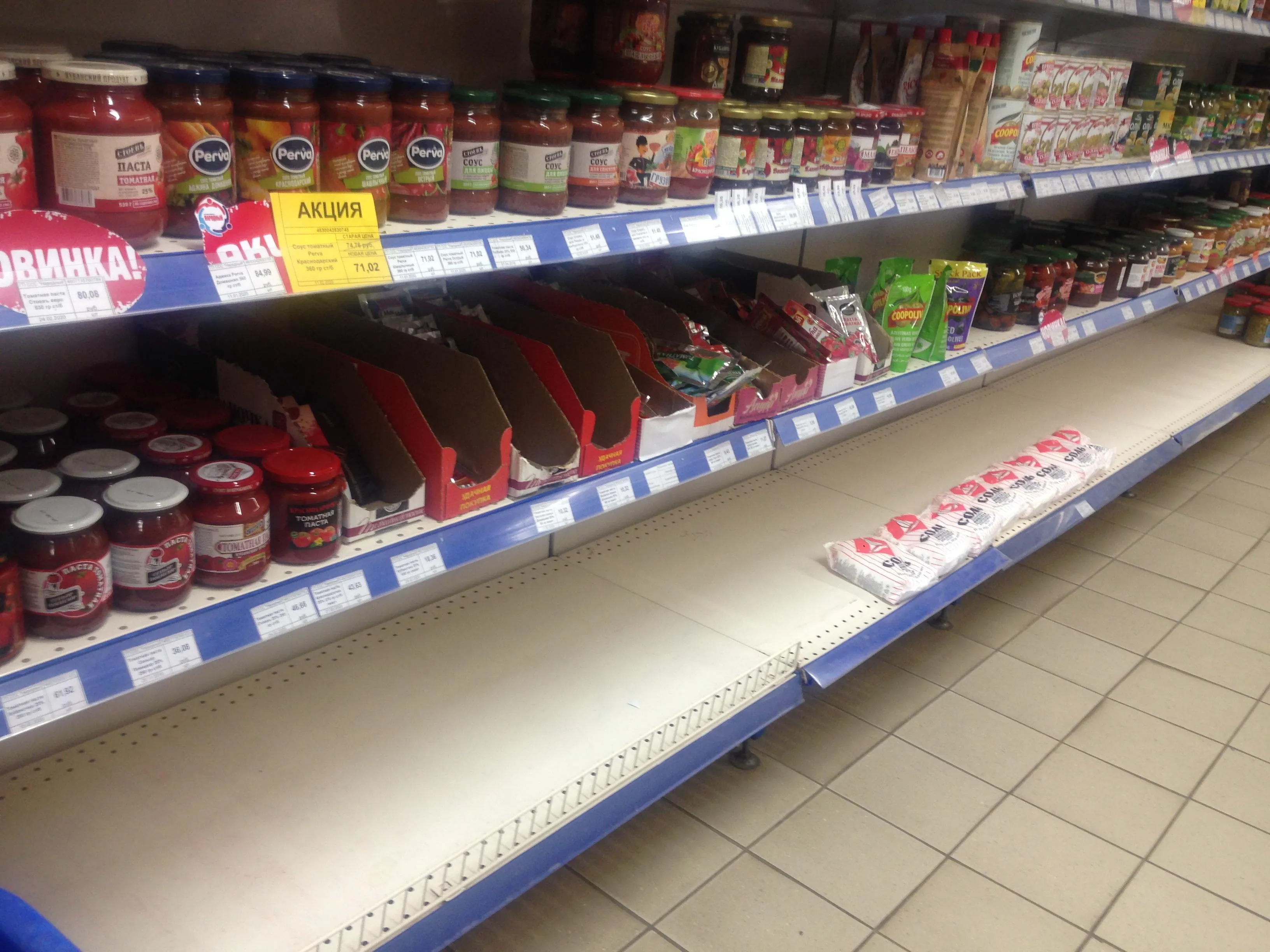 В общем, ассортимент здешних продмагов вряд ли сильно отличается от аналогичных где-то ещё. Товарные группы сформированы по основным покупательским запросам. Наполнение этих групп – вот в чем "изюминка". Скажем, в сети супермаркетов "Народный" ("национализированный" оккупантами "АТБ") вы не найдете на мясном прилавке говядины или свинины – там будет только курица и ее производные. Можно найти даже куриные шеи, которые из-за их дешевизны большой дефицит, но изысков вроде телятины, ребер или свинины там не будет.