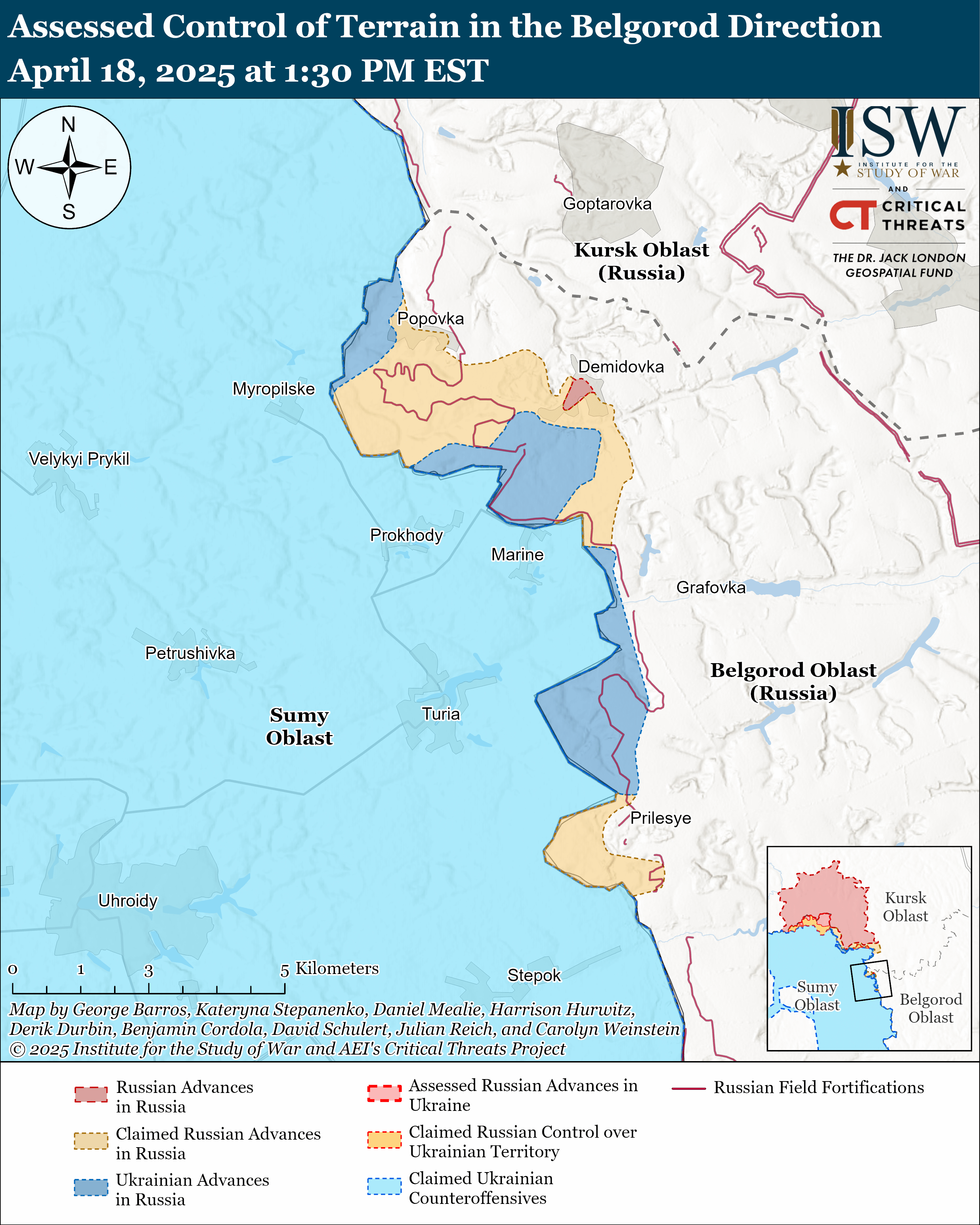 Бойові дії в Україні та Росії за 18 квітня / Карти ISW