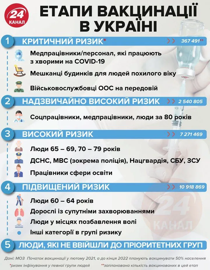 План вакцинації українців / Джерело: МОЗ / Інфографіка 24 каналу