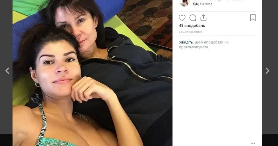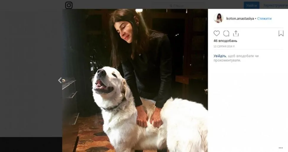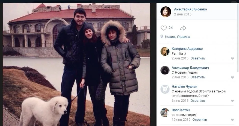Також є фото Тетяни Лисенко і її доньки Анастасії – із собакою (вочевидь також Боголюбових), всередині цього будинку.