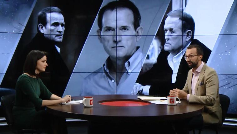 Євгенія Моторевська: Зауважу, що Медведчук є не просто прихильником проросійських сил, він фактично є доволі близьким до чинного президента Росії Володимира Путіна – він його кум. Крім того, журналісти програми "Схеми" з’ясували, що родина Медведчука має бізнес в Російській Федерації. Зокрема, його дружина, яка є медійною особою, Оксана Марченко контролює фірму, яка отримала право на видобуток нафти у великому російському родовищі.