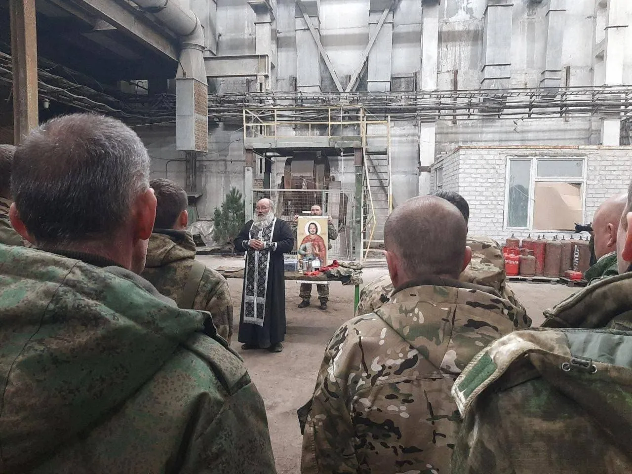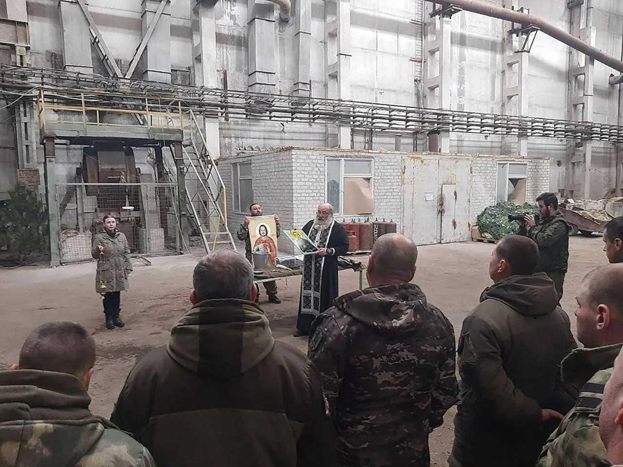 Російський піп прийшов до мобілізованих з іконами з обличчям Стремоусова / Фото з телеграму