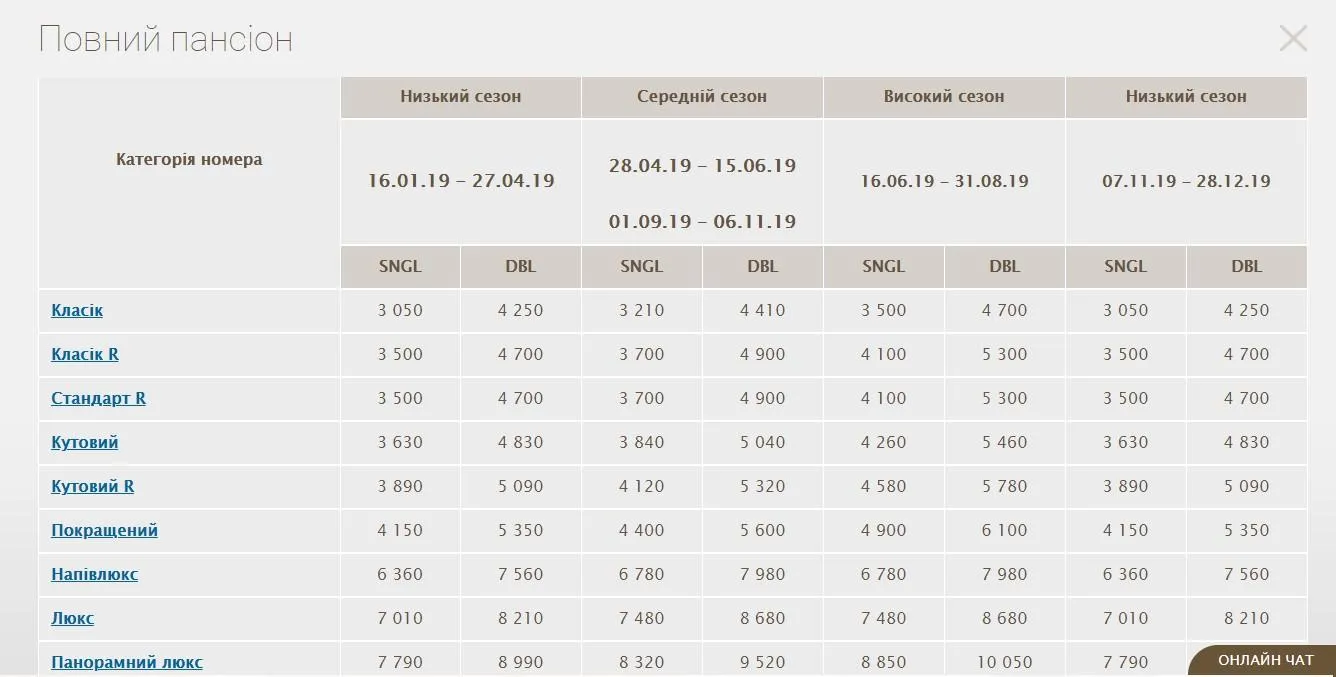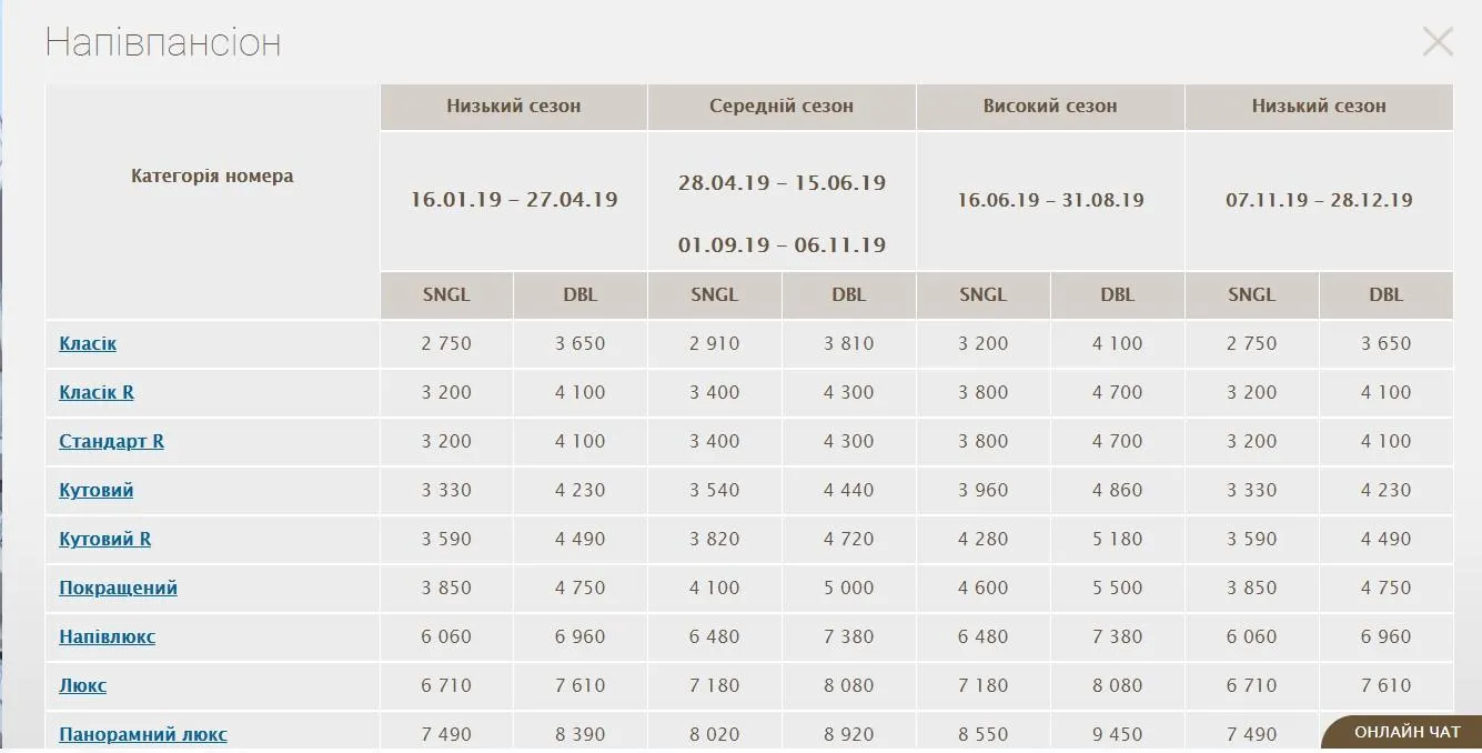 Вартість одного номера зараз там починається від 3200 гривень за добу.