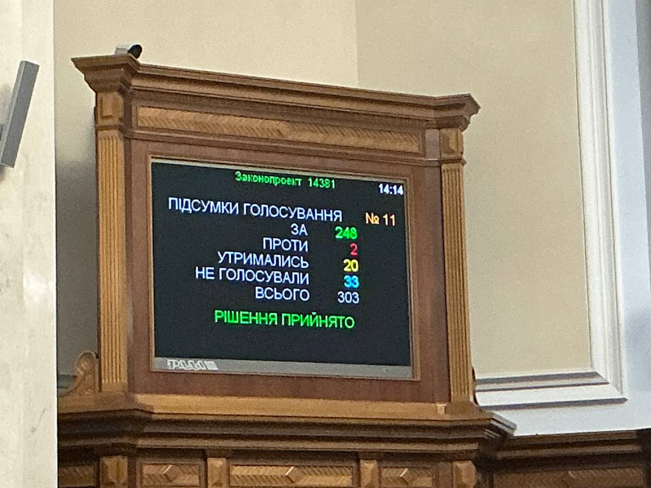"За" проголосували 248 депутатів.