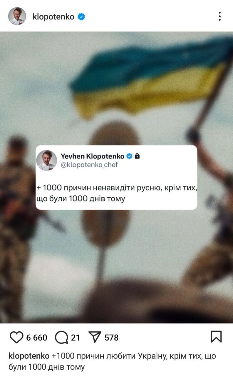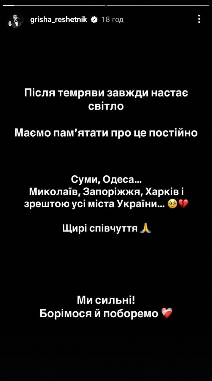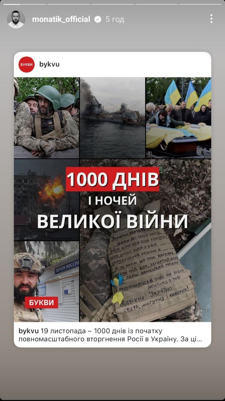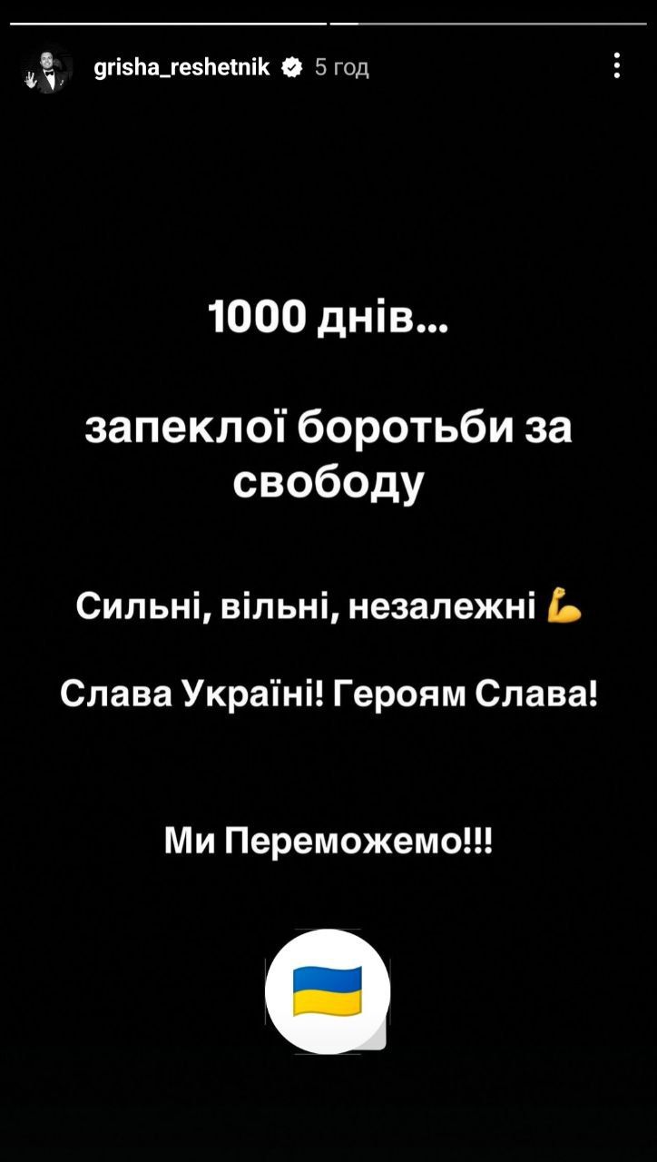 Варто зазначити, що ще чимало зірок згадали про 1000 днів повномасштабного вторгнення Росії проти України у себе в інстаграмі. Зокрема, Тіна Кароль, Григорій Решетник, Олександра Заріцька та Володимир Остапчук.