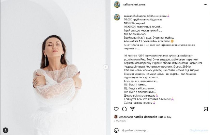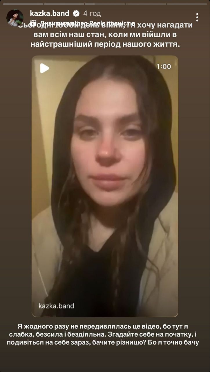 "1000 днів розбитих мрій. 1000 днів покалічених душ. 1000 днів надзусиль. 1000 найстрашніших днів. 1000 днів, які назавжди змінили нас", – написала співачка Надя Дорофєєва.