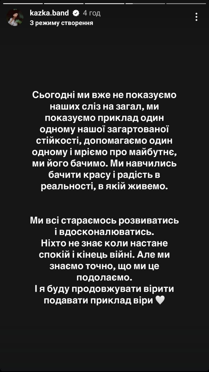 Попри це, як написала жінка, у житті українців є і щасливі моменти, радість та краса. Маша Єфросиніна додала, ми змогли вистояти та не зламатися, ми змінилися, але навчилися жити у новій реальності.