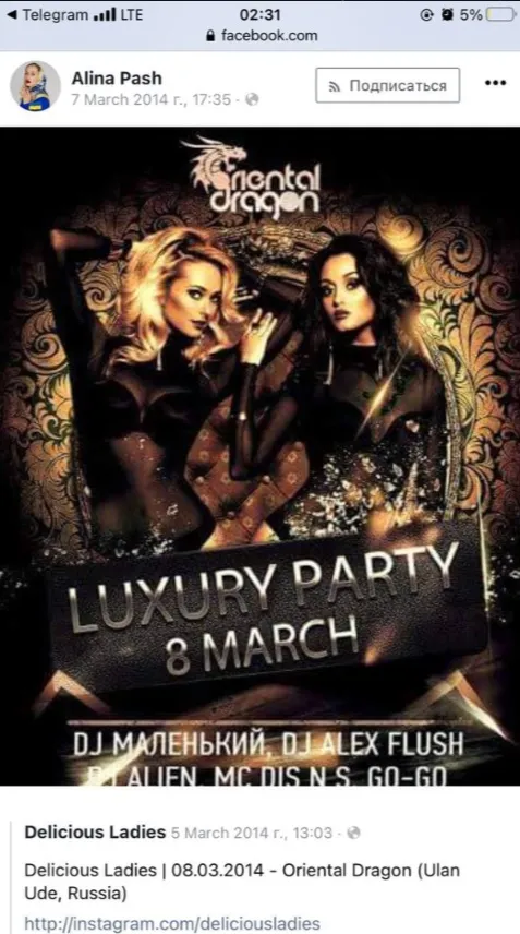 На початку своєї кар'єри Аліна Паш була учасницею гурту Delicious Ladies. Колектив упродовж 2013 – 2014 років продовжував гастролювати Росією попри Революцію Гідності.