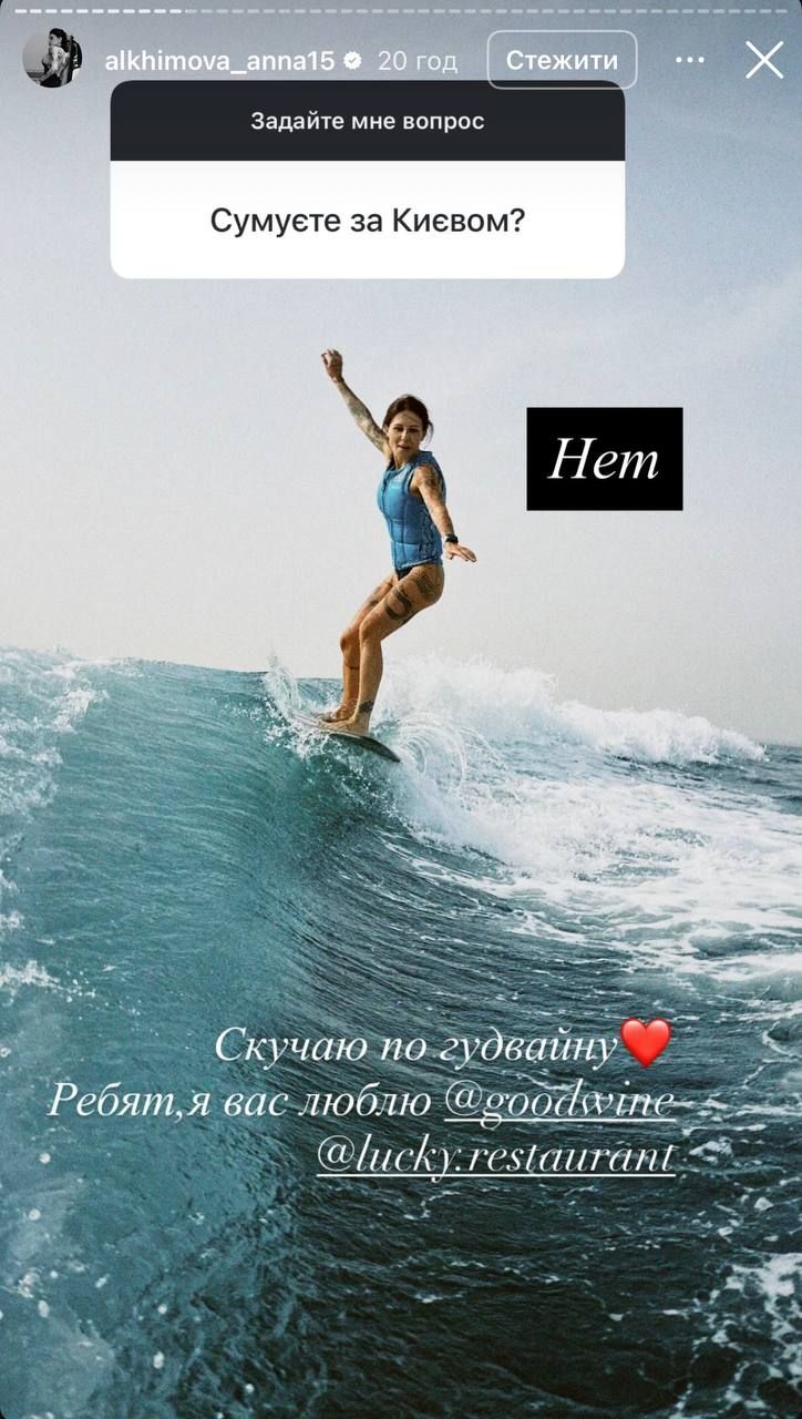 Сьогодні ж Анна Алхім записала кілька сториз, де відповіла людям, які її критикують через виїзд з України.