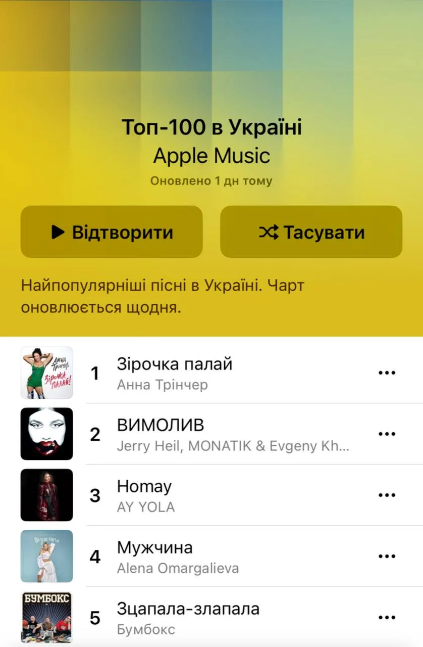 Чарт Apple Music станом на 11 квітня / Скриншот з чарту