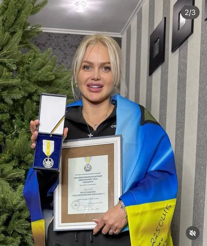 Анна Жук не стояла осторонь подій війни, а допомагала ЗСУ. За це вона отримала відзнаку "За сприяння війську" від Головнокомандувача Збройних Сил України.