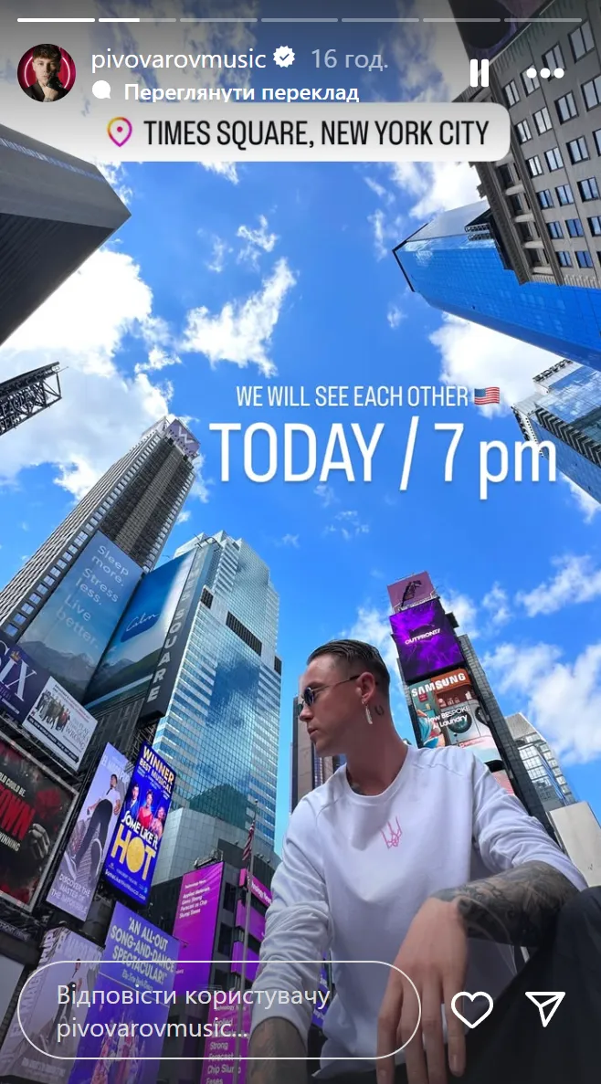 Артем Пивоваров на Таймс-сквер / Скриншот з інстаграм-сторіс