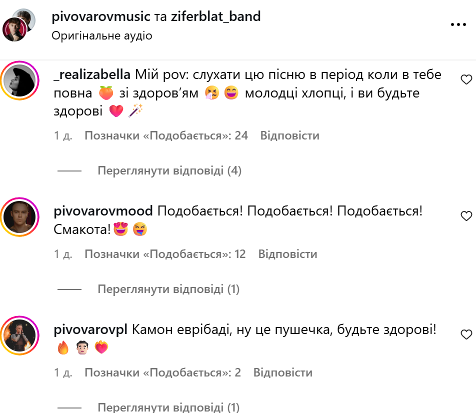 Реакція слухачів на трек The Вуса та Ziferblat – "Будь здоров" / Скриншоти з інстаграму