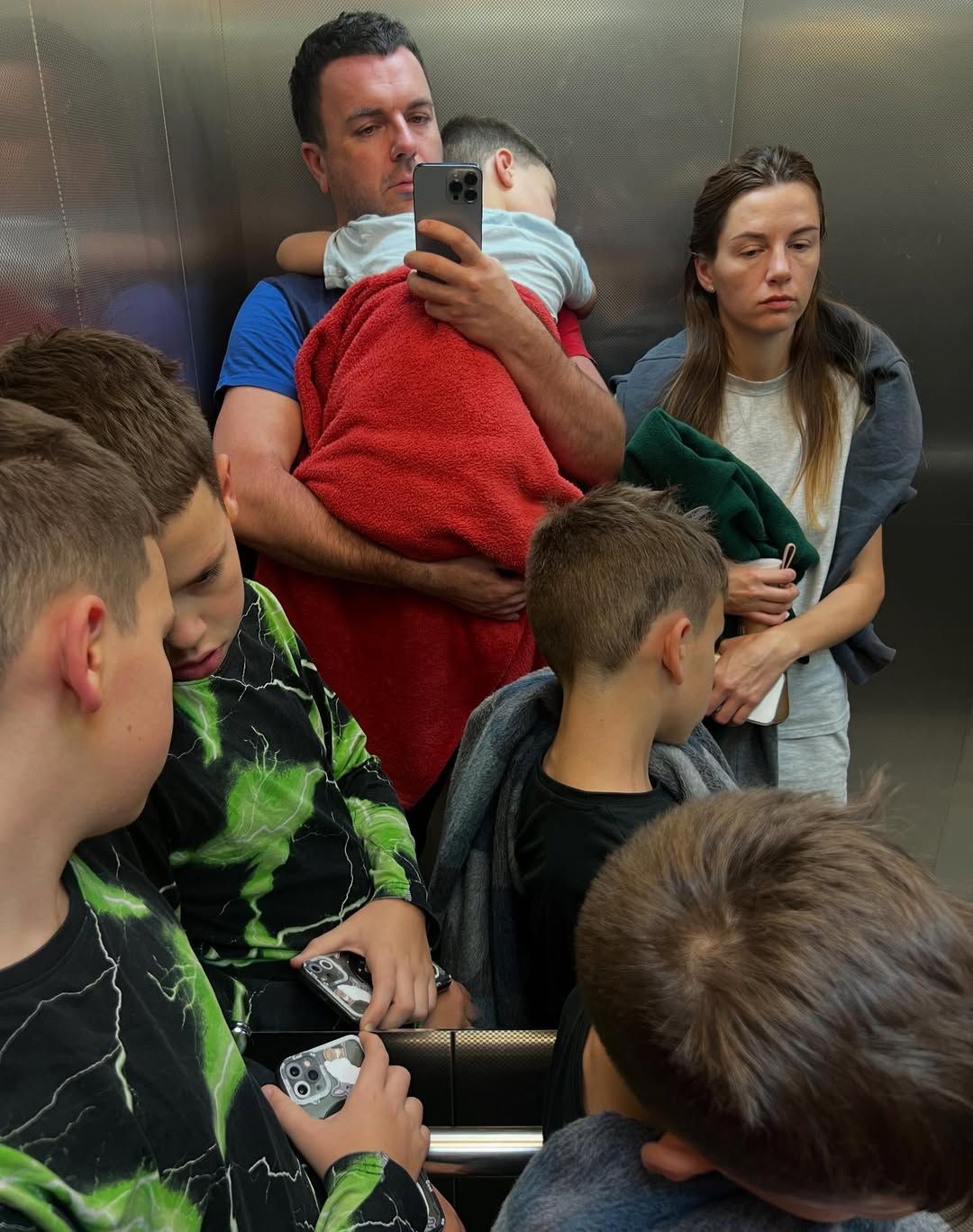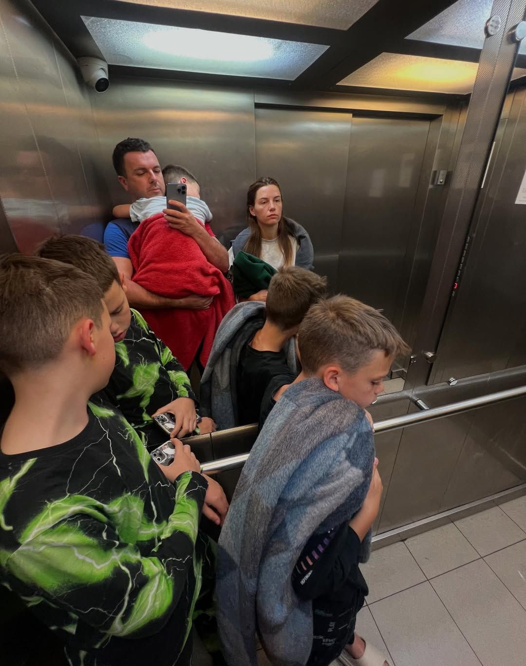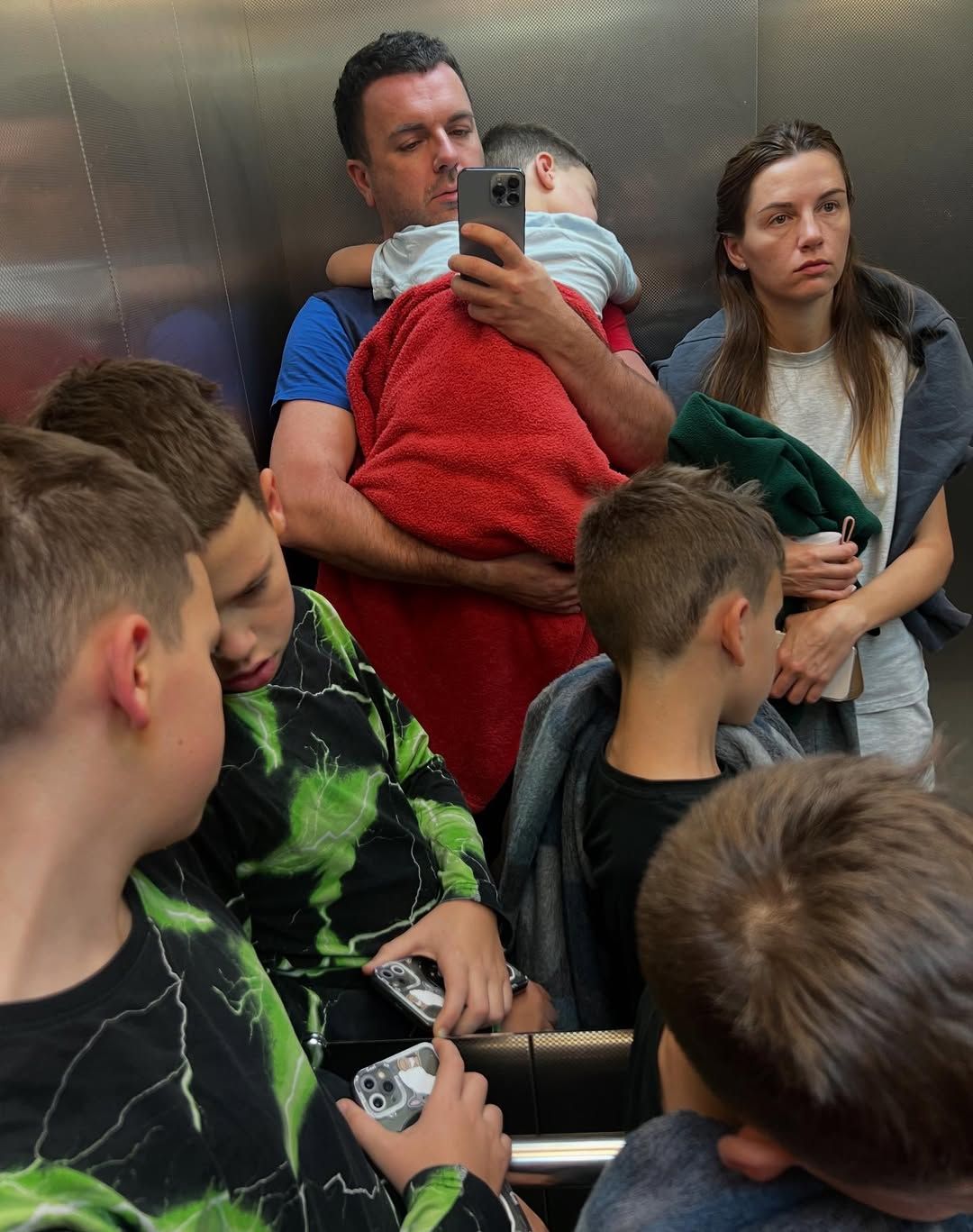 Григорій та Христина Решетники з дітьми спускаються в укриття / Фото з інстаграму телеведучого