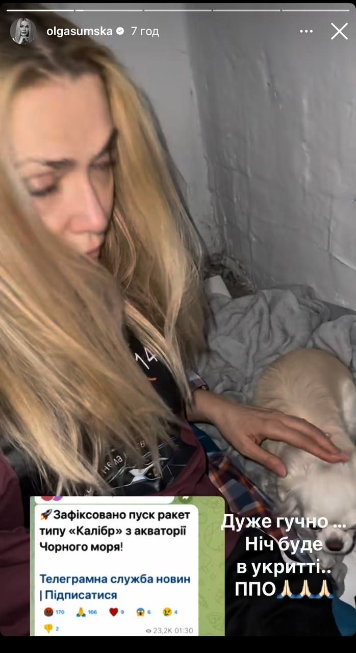 Джамала опублікувала відео, на якому чути, як ППО працює по повітряних цілях. Співачка показалася схвильованою, зі сльозами на очах.