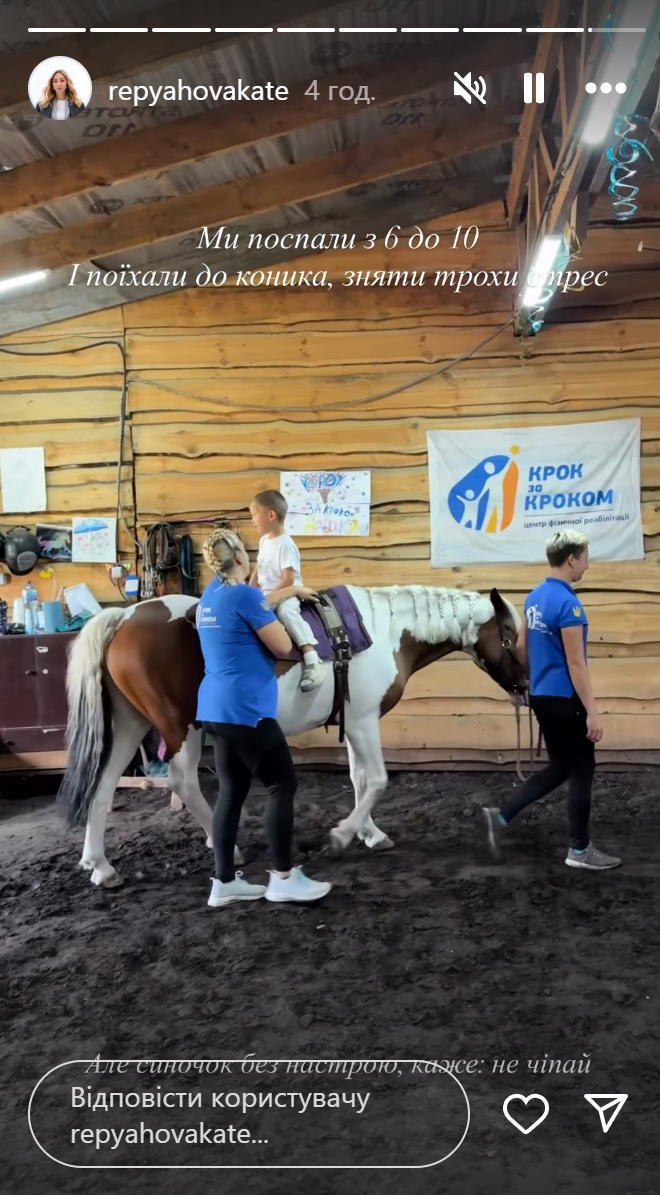 Вже після ракетної атаки дружині Віктора Павліка з сином вдалося поспати декілька годин, а далі вони відправились на верхову їзду, щоб зняти стрес, утім Михасик все одно був без настрою, як зазначила Репяхова.