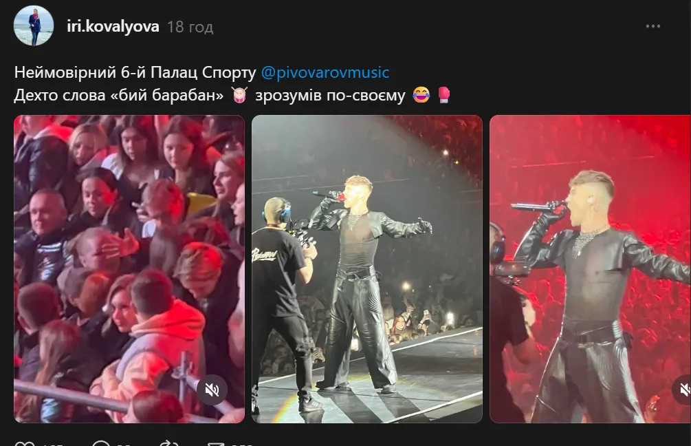 Користувачка опублікувала відео з 6-го концерту Артема Пивоварова у Палаці спорту, який відбувся 15 листопада. У ролику видно, що в одному з секторів розпочалася штовханина між відвідувачами.