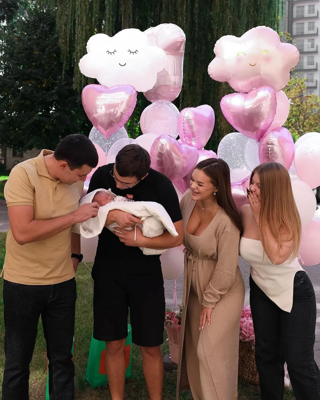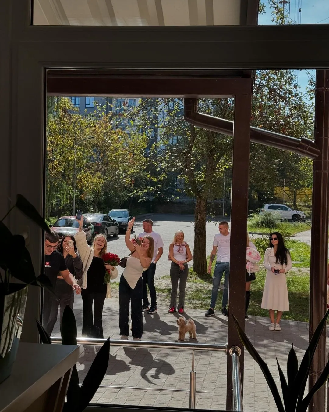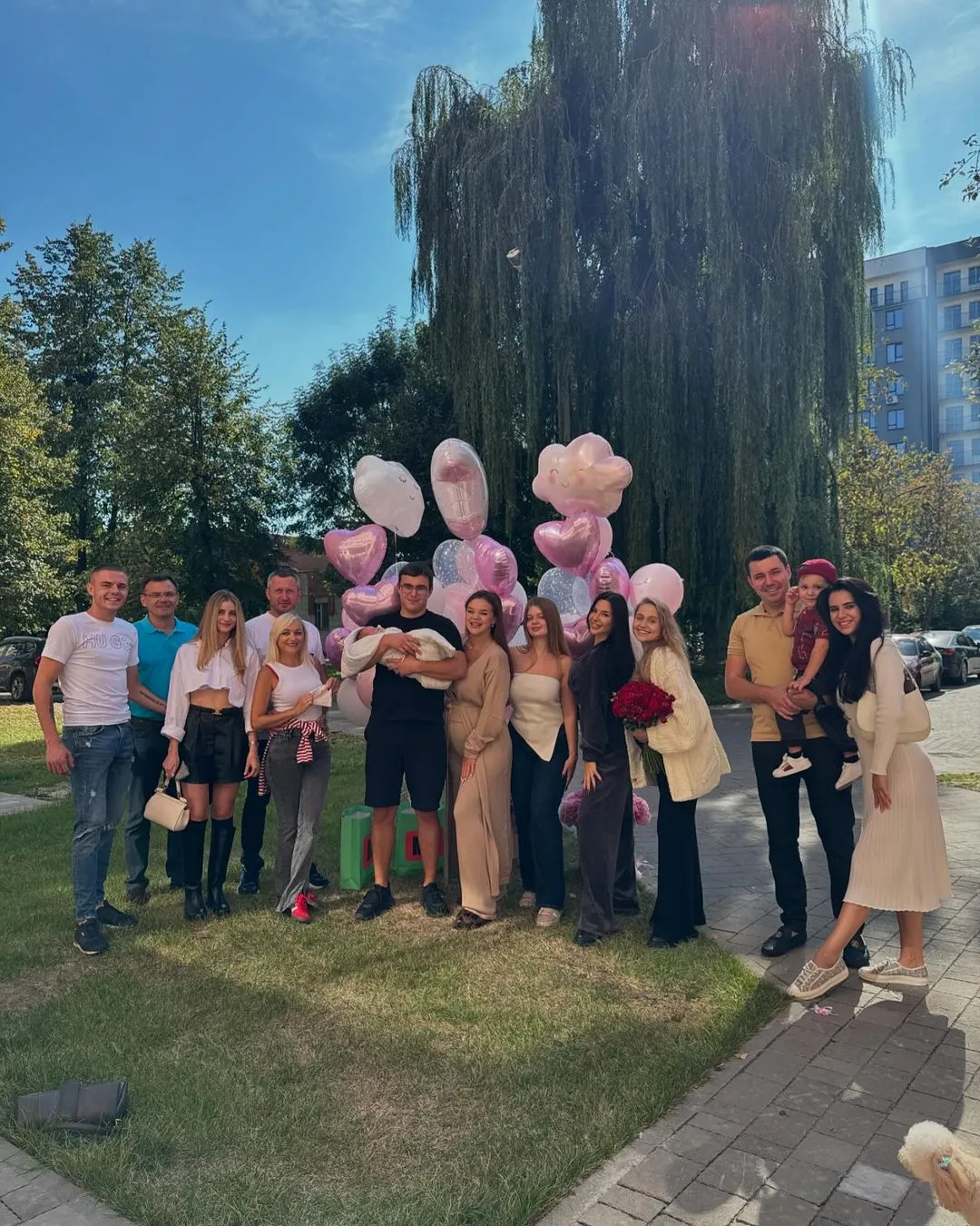 Юля Верба показала зворушливі фото з виписки. Під вікнами пологового будинку її зустрічав коханий Костянтин, родичі та близькі друзі, серед яких блогерки Ліна Сидор і Анастасія Іванишин.