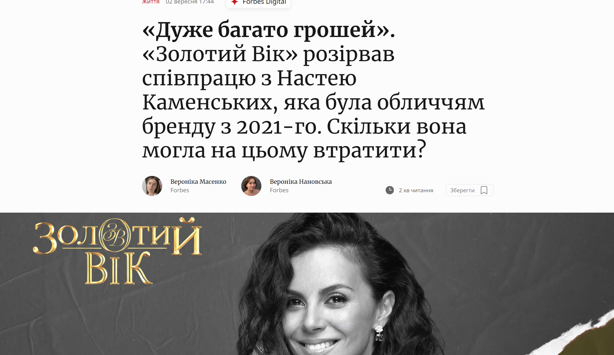 Forbes розсекретив, скільки грошей Насті Каменських могли платити за співпрацю з "Золотим Віком" / Скриншот з сайту