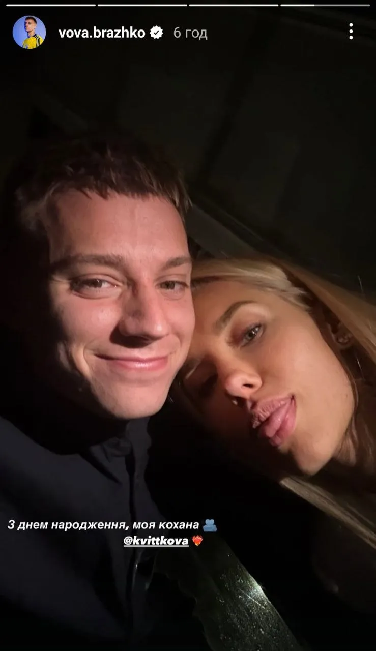 У липні Бражко підтвердив роман з Квітковою. Футболіст виклав спільне фото з коханою і привітав її з днем народження. Даші виповнилося 27 років, Володимиру ж – 23 роки.