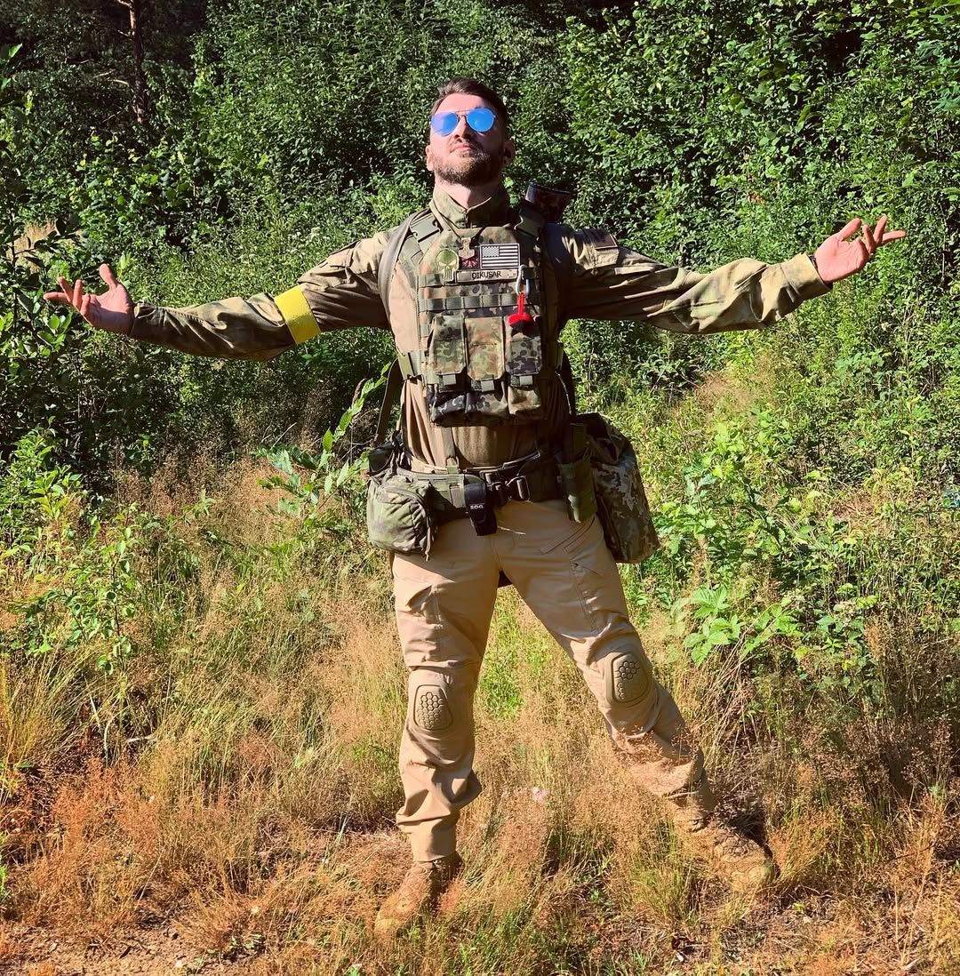 У березні цього року захисник опублікував допис, він "заступився" за Володимира Зеленського, коли того запитали про костюм на зустрічі з Дональдом Трампом. Тоді президент відповів, що носитиме костюм після закінчення війни, а військовий у своєму інстаграмі пожартував, домалювавши собі костюм на фото у військовій формі.