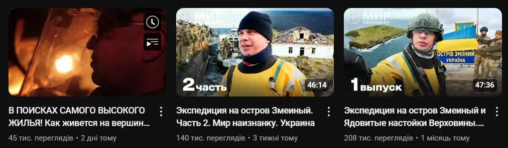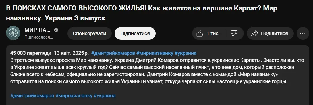 У виданні "Антоніна" зауважили, що в Дмитра Комарова є два ютуб-канали. Перший, російськомовний "Мир наизнанку", створений ще у 2010 році. А україномовний "Світ навиворіт" створили у 2019, але відео там почали виходити близько двох років тому.
