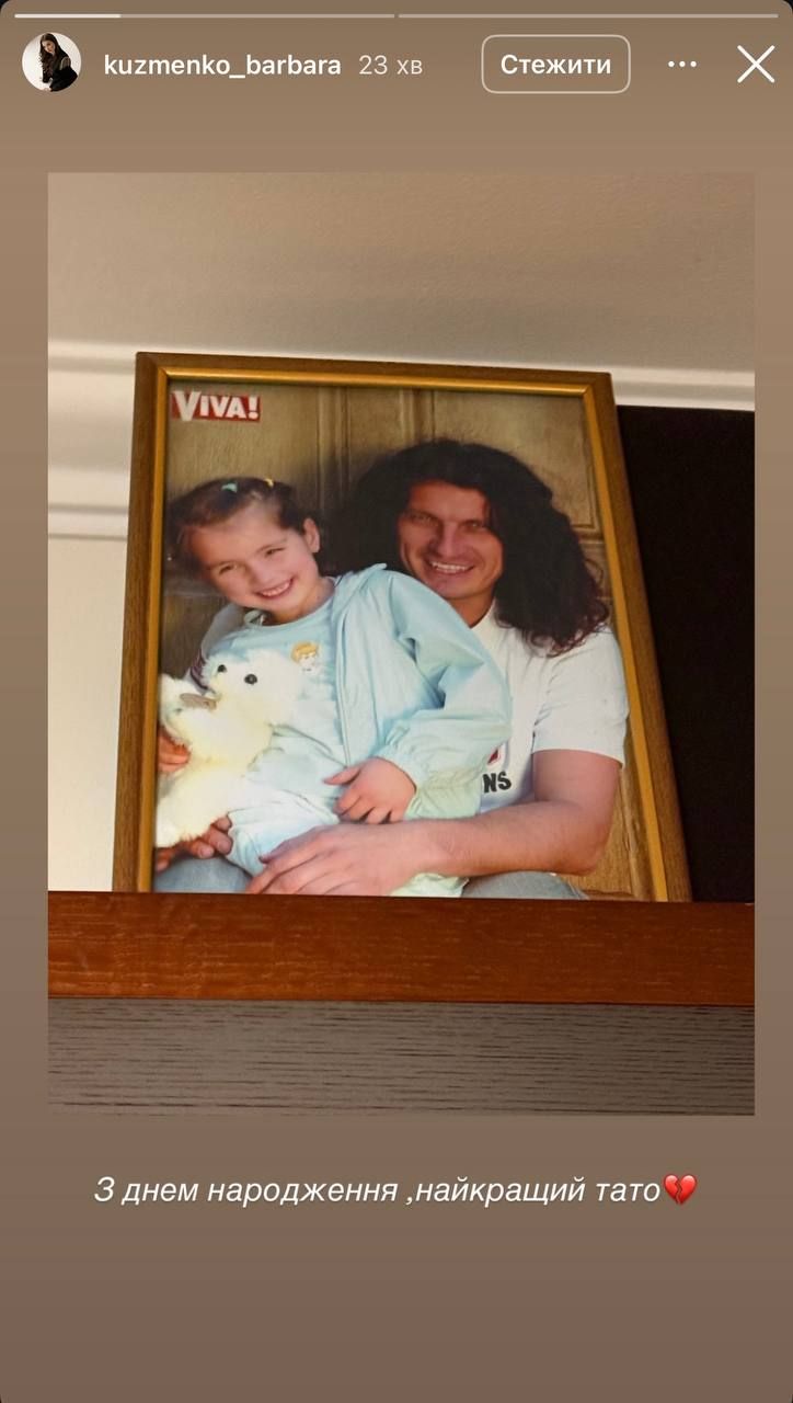 Марія-Барбара опублікувала фото з Кузьмою, зроблене у її дитинстві. Дівчинка сидить на колінах у батька та тримає в руках іграшку. Співак ніжно обіймає доньку й усміхається.