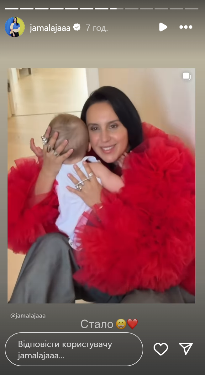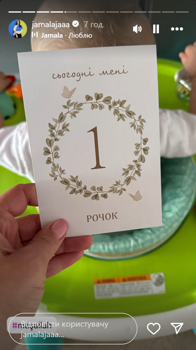 Так, Джамала запостила інстаграм-сторіс, де повідомила, що Аліму виповнився один рік. Вона показала їхні спільні фото і пригадала, якою була під час вагітності.