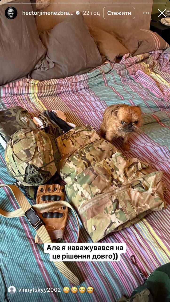Ектор Хіменес-Браво приїхав до військовослужбовців 429-го окремого полку безпілотних систем "Ахіллес". Він повідомив, що зник на кілька днів та був без зв'язку. Шеф-кухар заявив, що більше не може сидіти вдома та зробив те, на що наважувався з лютого 2022 року. Чоловік додав, що стане частиною армії.