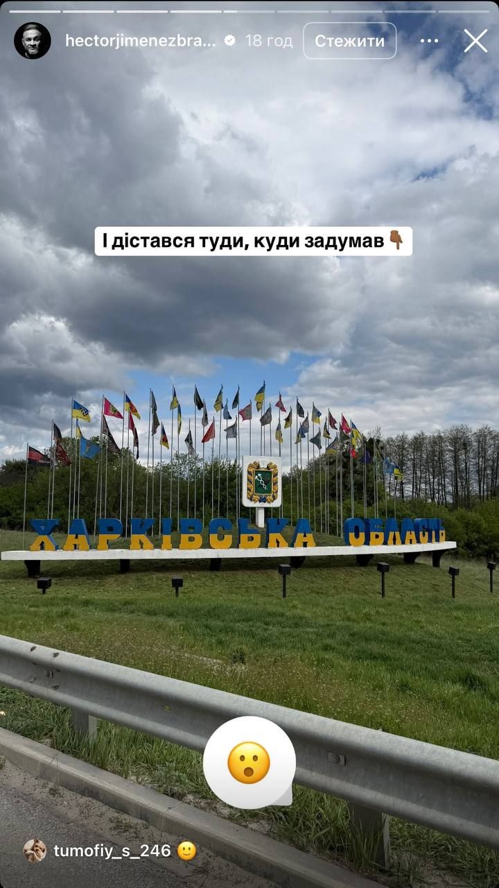 Ектор Хіменес-Браво також опублікував кілька сториз, де, зокрема, показав, що приїхав на Харківщину.