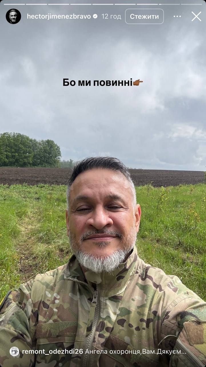Про це повідомляє Show 24 з посиланням на інстаграм-сторінку Ектора. Він опублікував відео, де постав у військовій формі.