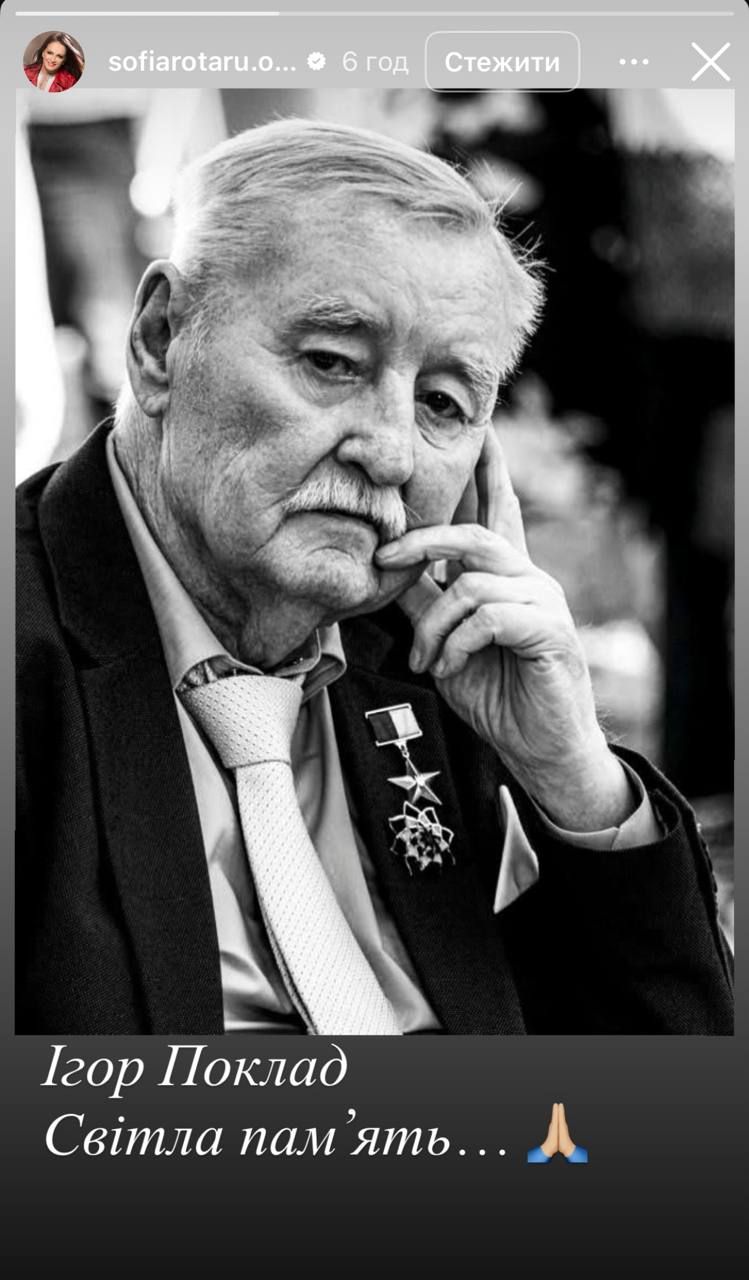 "Я досі вдячна за той щирий прийом і за підтримку на самому початку мого творчого шляху. Сьогодні Ігор Дмитрович відлетів назавжди, та його музика житиме вічно. Його твори, його крила нестимуть нас над вільною і сильною Україною, і не дадуть впасти у найважчі часи", – зазначила Руслана.