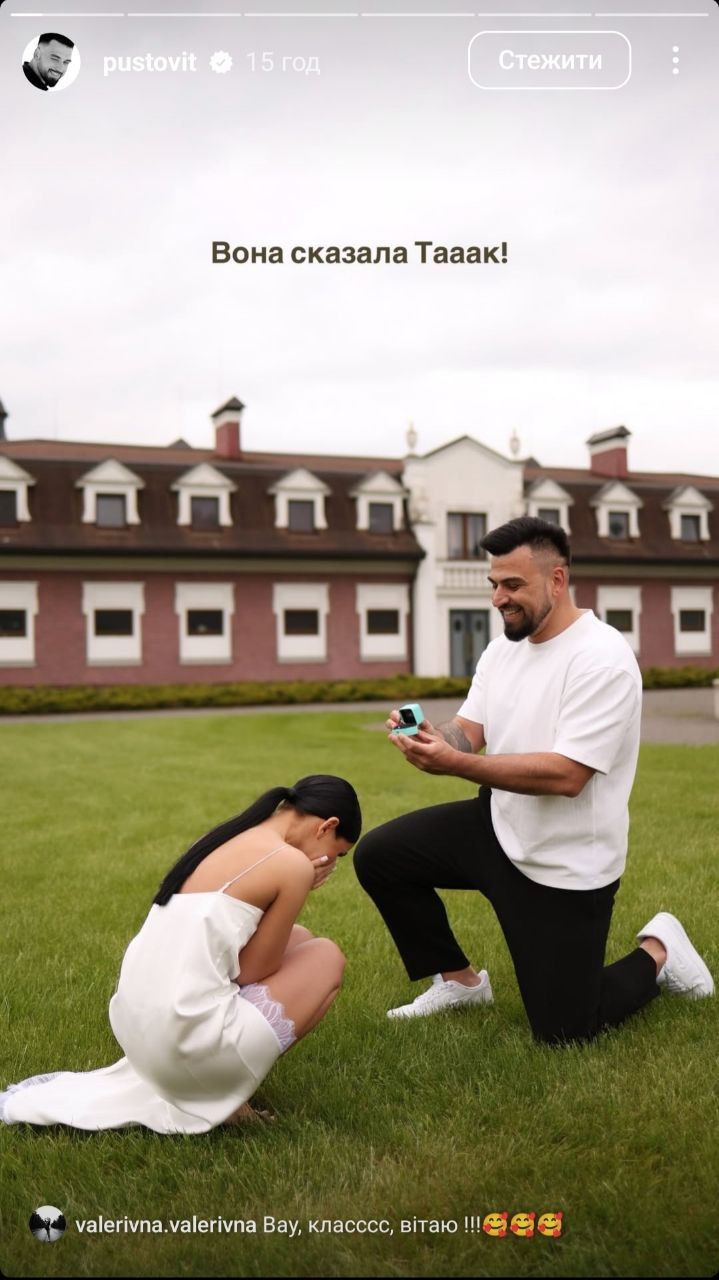 В сториз Ігор поширив фото, на якому стоїть на одному коліні та простягає коханій обручку. Вікторія сказала "так".