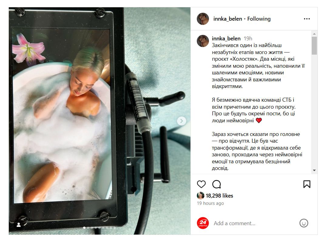 Інна Бєлєнь висловилась про участь в шоу "Холостяк" / Скриншоти з інстаграму