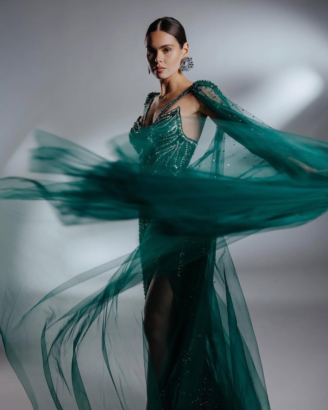 Вечірня сукня "Велич природи" втілювала гармонію жінки з природою, поєднання традицій і сучасності, України та світу. Цей образ – про силу духу, яка не ламається.