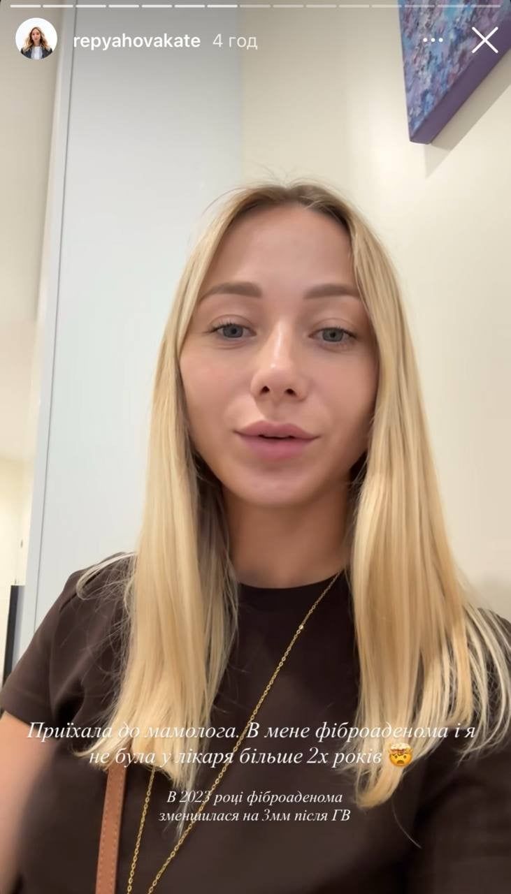 Катерина Репяхова, дружина українського співака Віктора Павліка, розповіла, що зараз проходить комплексне медичне обстеження. Зокрема, 30-річна блогерка завітала до мамолога.