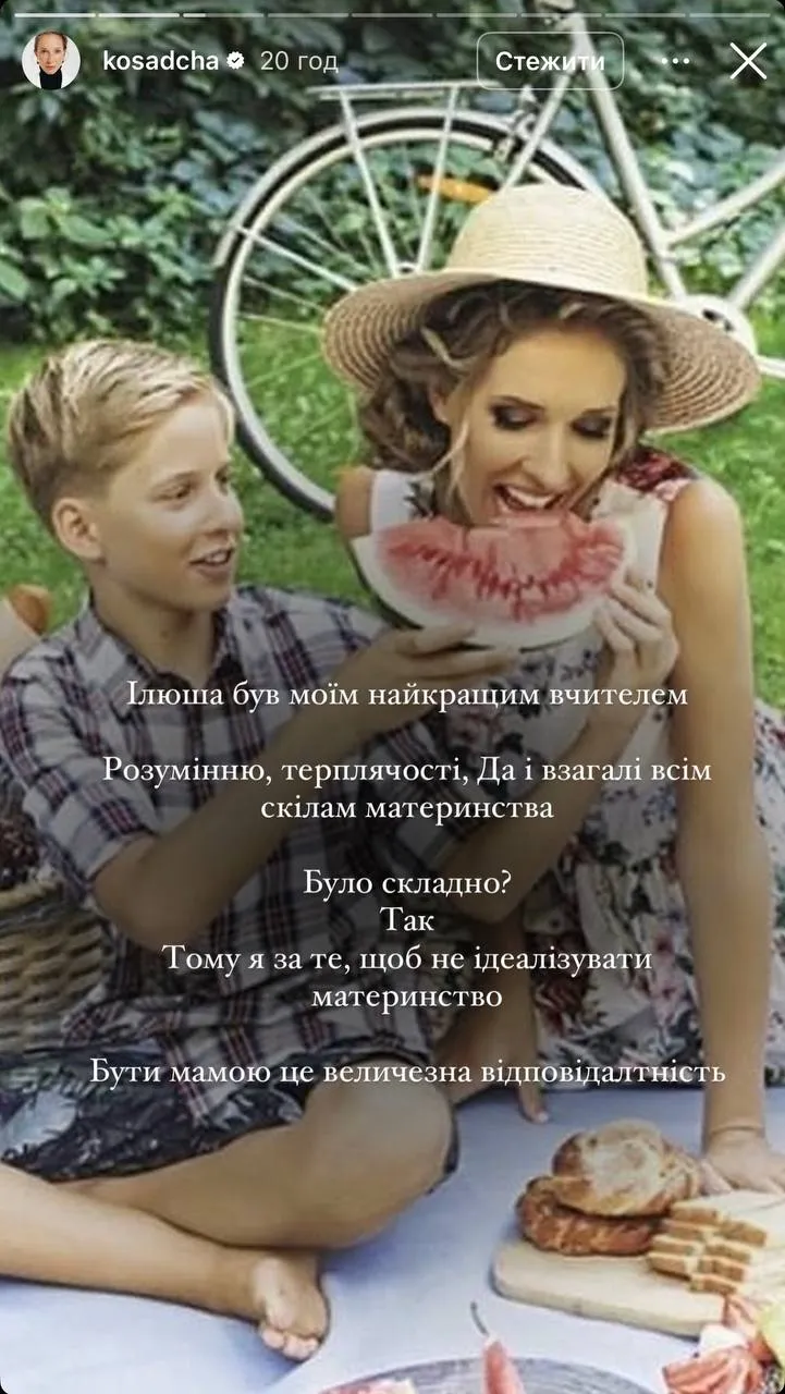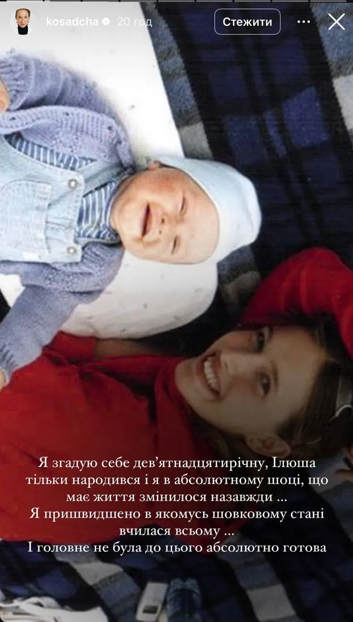 Я згадую себе дев'ятнадцятирічну, Іллюша тільки народився і я в абсолютному шоці, що моє життя змінилося назавжди… Я пришвидшено в якомусь шокованому стані вчилася всього… І головне – не була до цього абсолютно готова,