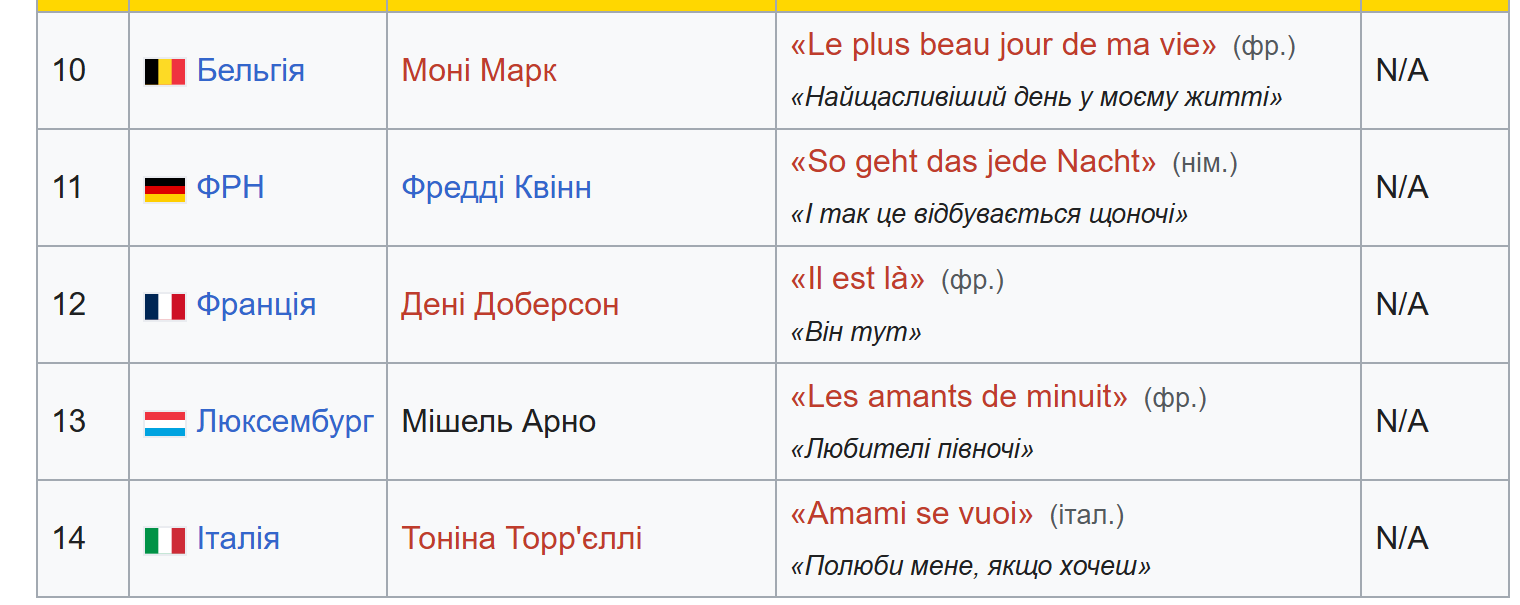 Цікавим фактом залишається те, що три країни – Австрія, Данія та Велика Британія – не змогли взяти участь у першому конкурсі через запізнення з проведенням національних відборів.