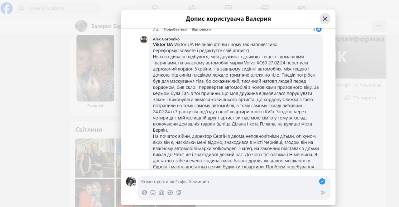 Олександр Горбенко розповів про виїзд Олега Винника за кордон / Скриншот з фейсбуку