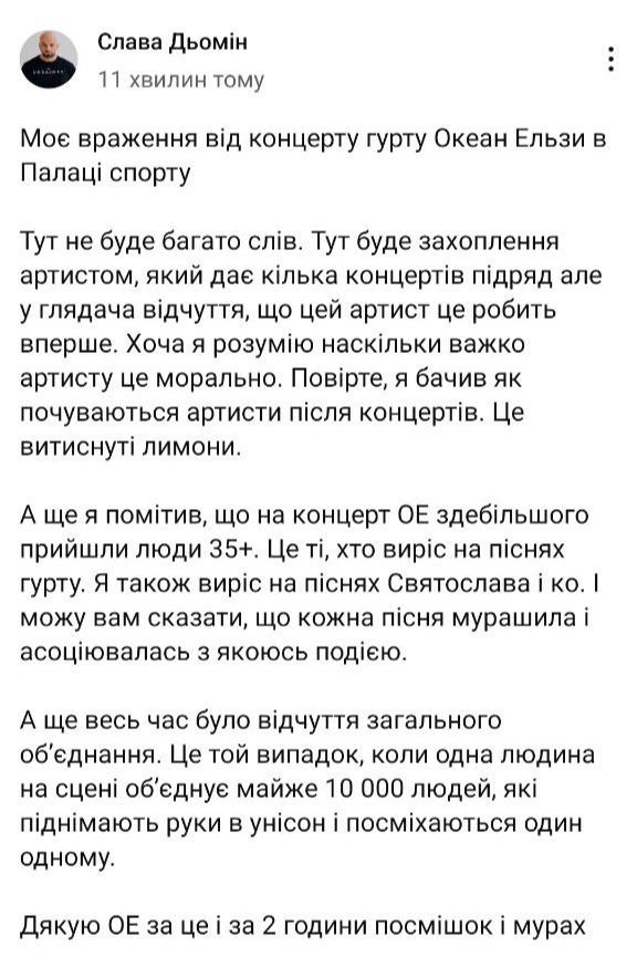 – написали на сторінці ОЕ в інстаграмі після концерту.