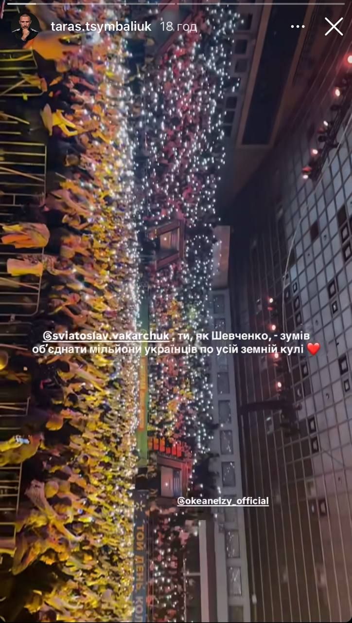 Концерт розпочався з пісні "Там, де нас нема", а завершився треком "Все буде добре". Разом зі Святославом Вакарчуком також виступили YAKTAK, KOLA та SHUMEI, які виконали "Той день". Нагадаємо, що нещодавно вони та ще Jerry Heil, яка не змогла приїхати на подію, переспівали легендарну пісню.