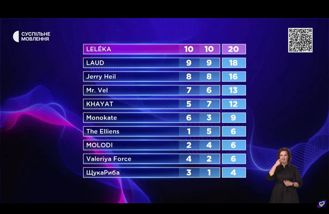 За результатами голосування LELÉKA набрала 20 балів: 10 від журі та 10 від глядачів.