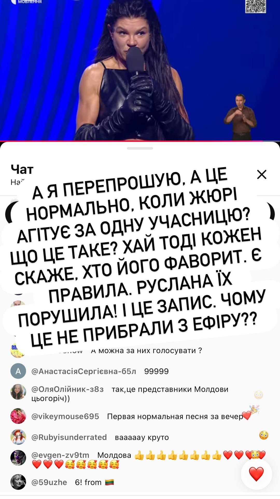 - "Суспільне та деякі журі займались відкритою агітацією, що суперечить правилам. Україну представляє людина, яка останні 11 років мешкає закордоном. Чому ми не вважаємо цю людину не в контексті та не відірваною від реальності?";