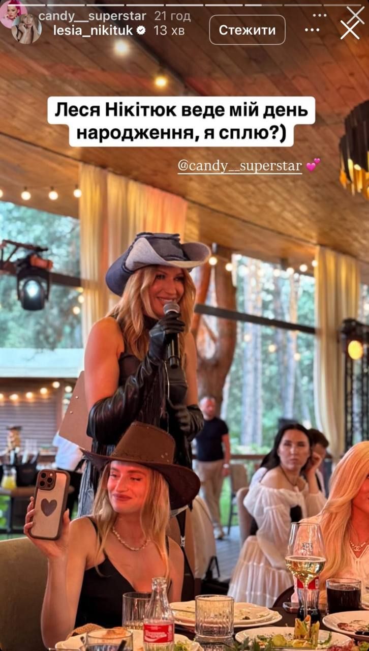 Леся Нікітюк стала ведучою на дні народженні блогерки Кенді Суперстар / Скриншот з інстаграм-сторіс