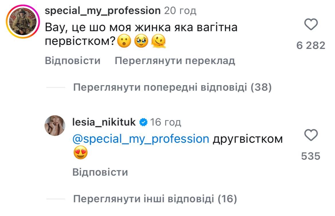 - Наречений Нікітюк, Дмитро Бабчук, з гумором прокоментував новину про вагітність під дописом в інстаграмі.